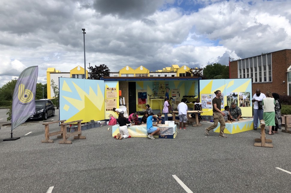 Sammen bygger vi en fantasifuld tunnel, som kaster lange skygger og er fyldt med små rum. Den bliver kun magisk, hvis du kommer og hjælper med at bygge, save og skrue! Vi skal designe farverige vinduer og figurer, som kan dreje i vinden. Måske bliver det til hemmelige portaler? Sammen skaber vi en eventyrlig skyggegang, der kan opleves på torvet.