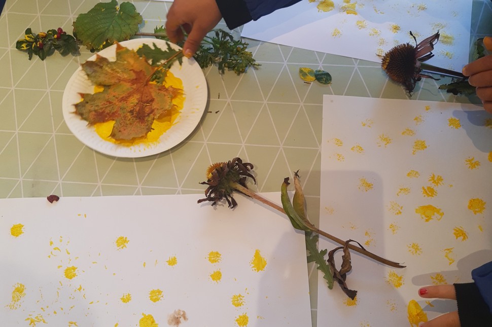 Kom med til en sjov efterårsworkshop, hvor vi skal lege, eksperimentere og male med grene og blade, som vi finder i naturen. Vi undersøger, hvilke motiver vi kan lave med en pind eller en blomst. Til sidst samler vi vores billeder til et stort, fælles kunstværk.