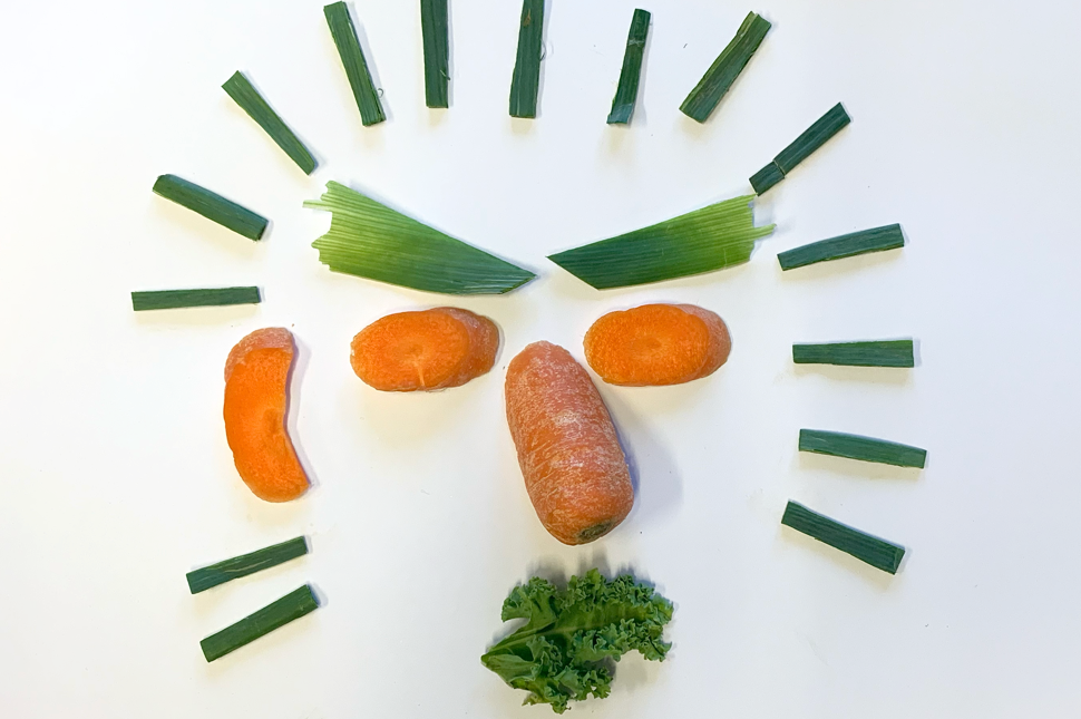 Første del af workshoppen skaber vi portrætter med forskellige grøntsager, som vi udskærer og sammensætter på papir. Sidste del af workshoppen kombinerer vi både tegning, fotografi, ståltråd og modellervoks til skøre ansigter. Her kan øjnene måske vende på hovedet eller et ansigt kan få tre øjne.